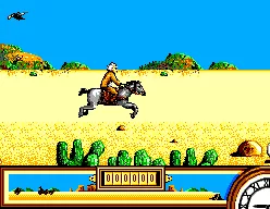 - Si el jugador no sobrevive al encuentro, aparecerá un mensaje en una pantalla negra que dice "¡Te dispararon demasiadas veces!", seguido de la fotografía de una lápida que dice "Aquí yace CLINT EASTWOOD - MUERTE: 5 de septiembre de 1855 - Después de un desacuerdo sobre un plato de pastel". El jugador podrá repetir el nivel las veces que desee.