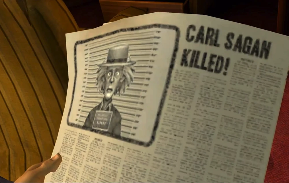 Mientras estaba en Hill Valley en 1931, el doctor Emmett Brown usó el alias "Carl Sagan" y su nombre apareció en el Hill Valley Telegraph.
