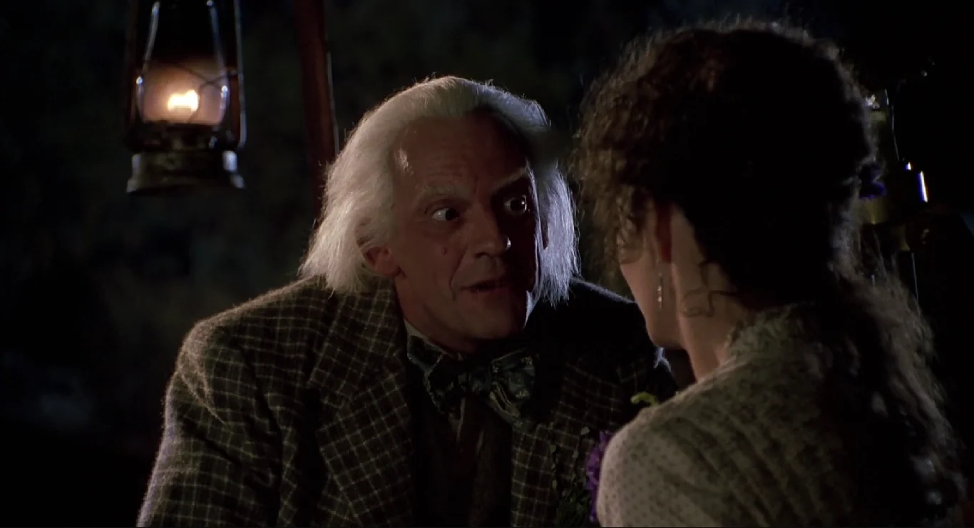 El 13 de junio de 1931 conoció a un joven (en realidad su futuro amigo, Marty McFly) que decía ser de la oficina de patentes de Washington DC. Inicialmente desconfiado del extraño, se abrió con él después de que el tipo lo ayudó a resolver el enigma de Ivanov. Después de explicarle al joven que tenía que entregar una citación a Arthur McFly y que necesitaba alcohol de grano de 190 grados como combustible para su taladro cohete motorizado, los dos se propusieron lograr estos objetivos.