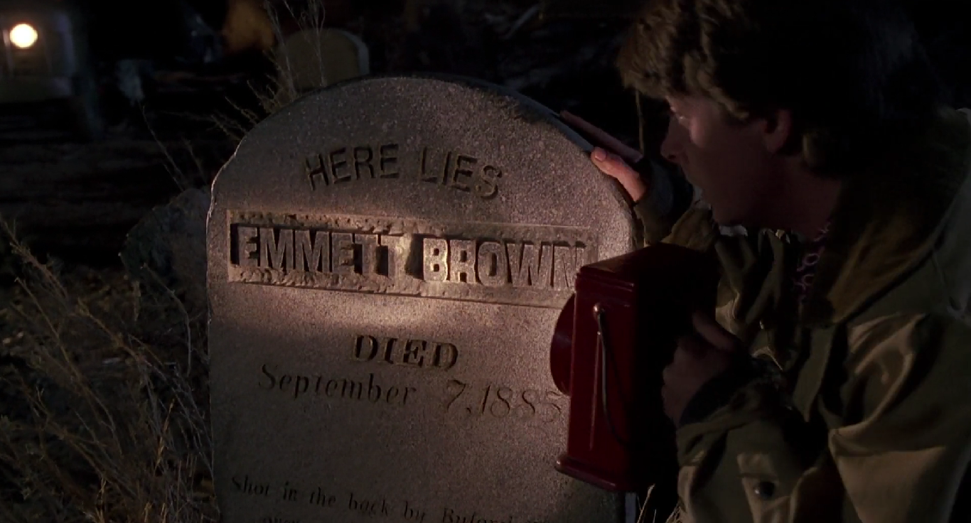 Doc finalmente terminó de instalar su máquina del tiempo en un automóvil deportivo DeLorean en 1985, usando plutonio para alimentarla, solo para ser asesinado por un grupo de terroristas libios a quienes se lo robó. El acuerdo con los libios era que querían que él les fabricara una bomba nuclear. Doc había hecho una falsa con piezas usadas de una máquina de pinball y había guardado el plutonio para la máquina del tiempo. El exceso de confianza de Doc resultaría ser su perdición, ya que dijo que los libios eran demasiado tontos para descubrir que habían sido engañados. Presumiblemente los libios intentaron detonar la bomba de Doc para un acto terrorista, y cuando fracasaron se dieron cuenta de la verdad.