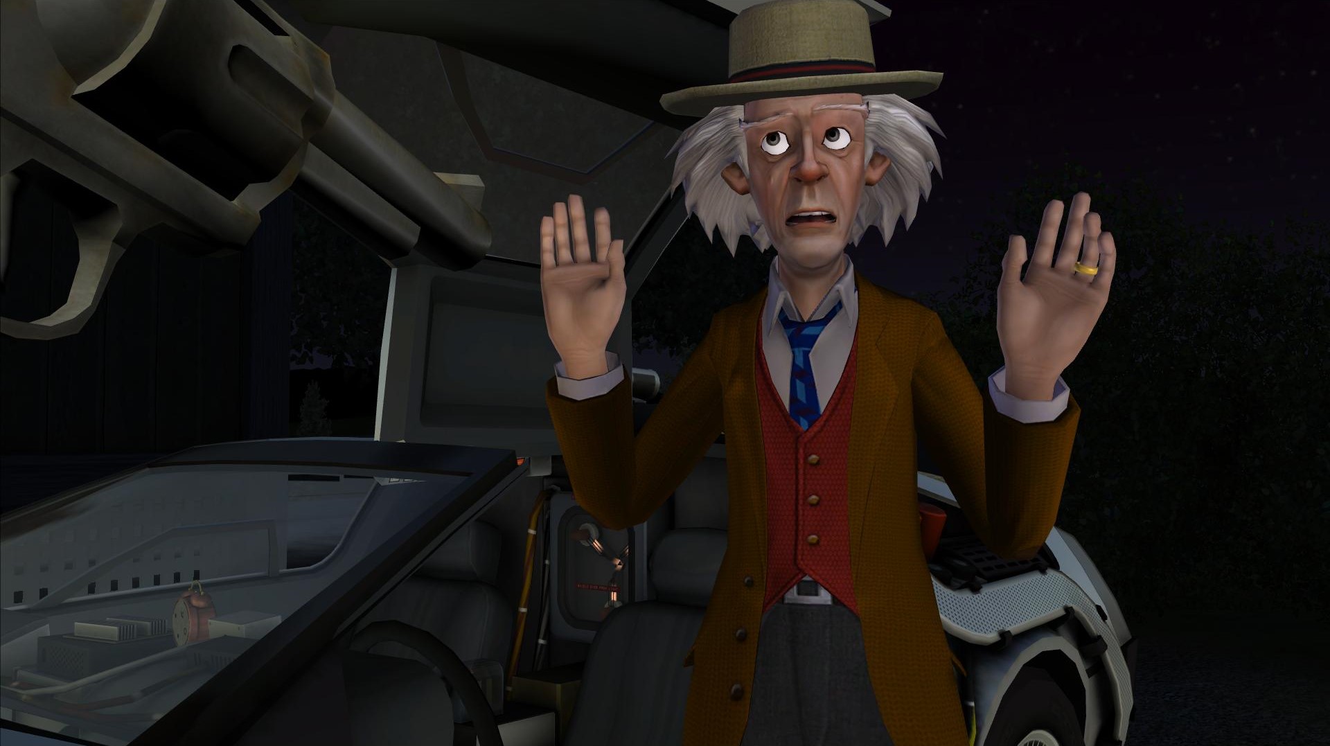 Doc estaba reparando el DeLorean con Marcus Irving, pero se tomó el tiempo para escuchar las preocupaciones de Marty. Cuando Marty le dijo a Doc que su tío Joey había sido liberado de prisión, Doc entró en pánico y le dijo a Marty que se mantuviera alejado de él.
