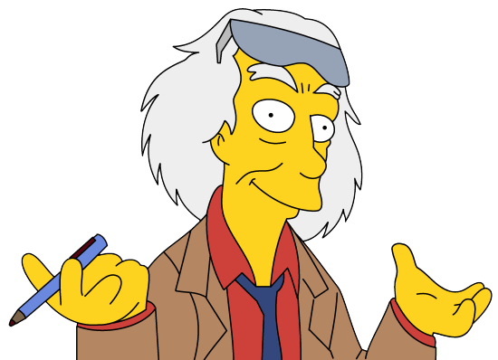 Doc al estilo de animación de The Simpsons para un video de The Simpsons Ride.
