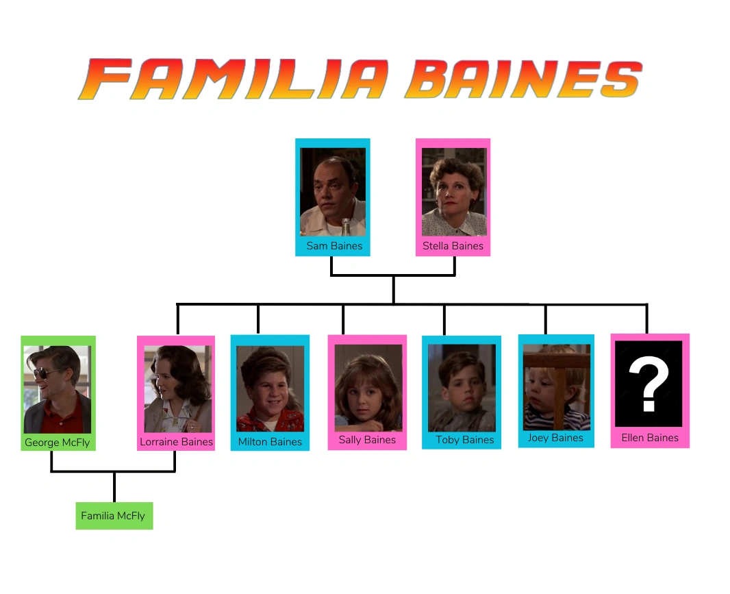 La familia Baines de Hill Valley estaba conformada por Sam Baines, su esposa Stella y sus seis hijos.